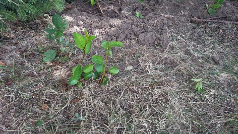 Déjà l'an dernier quelques petites poussent sortaient de la pelouse, enlevées à la main. Mais cette année, les petites en ont fait d'autres qu'il n'est plus possible d'enlever à la main, et une fois coupées, repoussent de plus belle. Les racines sont très dures et profondes, il y a apparemment tout un réseau. Mais d'où cela sort il ? Je pense avoir fait des recoupements avec un arbuste, mais ce qui sort est à plus de 10 m de ce dernier, pluôt localisé sous des sapins et des bouleaux. Voici des photos pour identifer et surtout m'aider à éradiquer cette plante, sinon, notre pelouse va se transformer en forêt