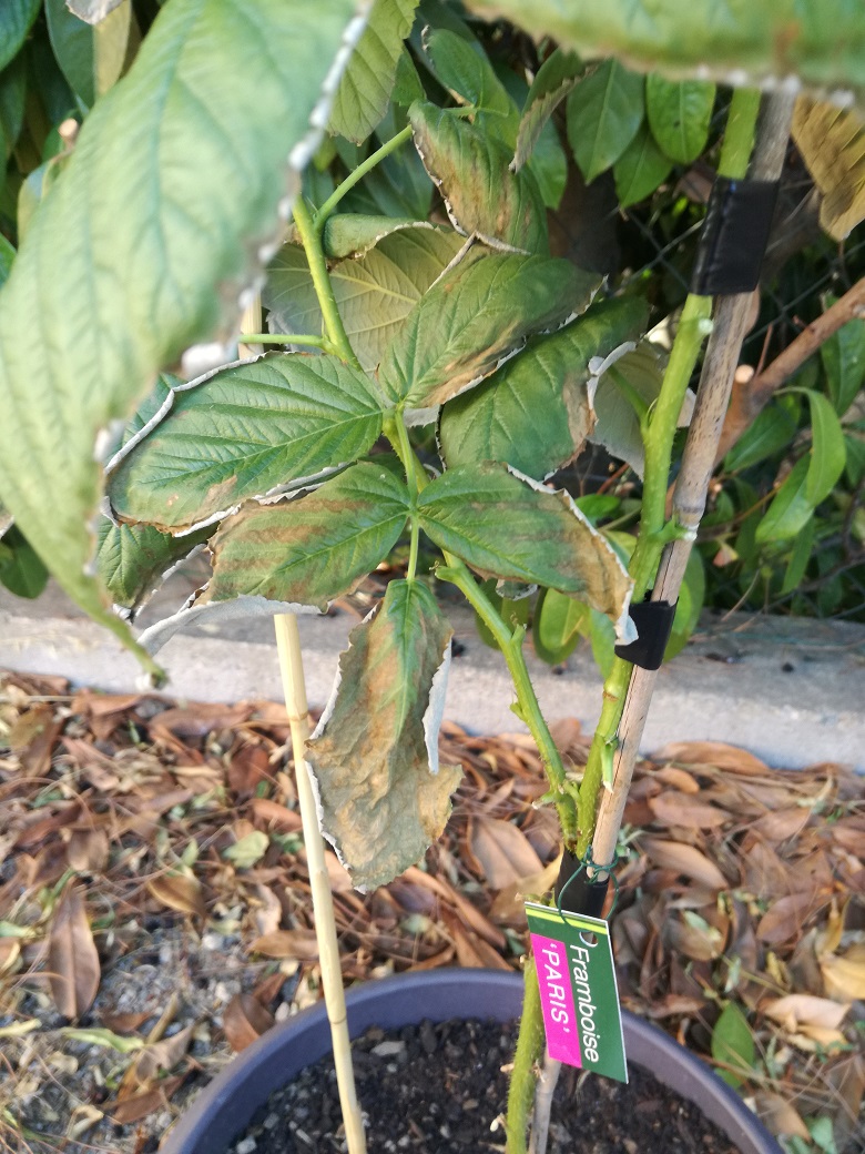 Je viens poster des photos de mon rosier et mon framboisier car leurs feuilles prennent des teintes anormales ..