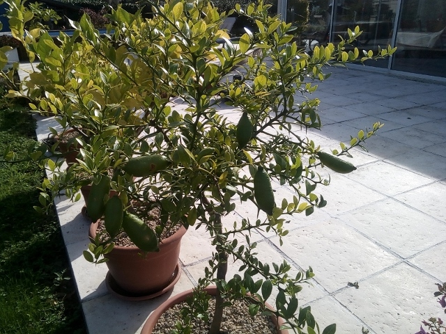 de bonne tenue (40 cm, à 24 € le pot) du citronnier aux fruits à l'allure de culotte