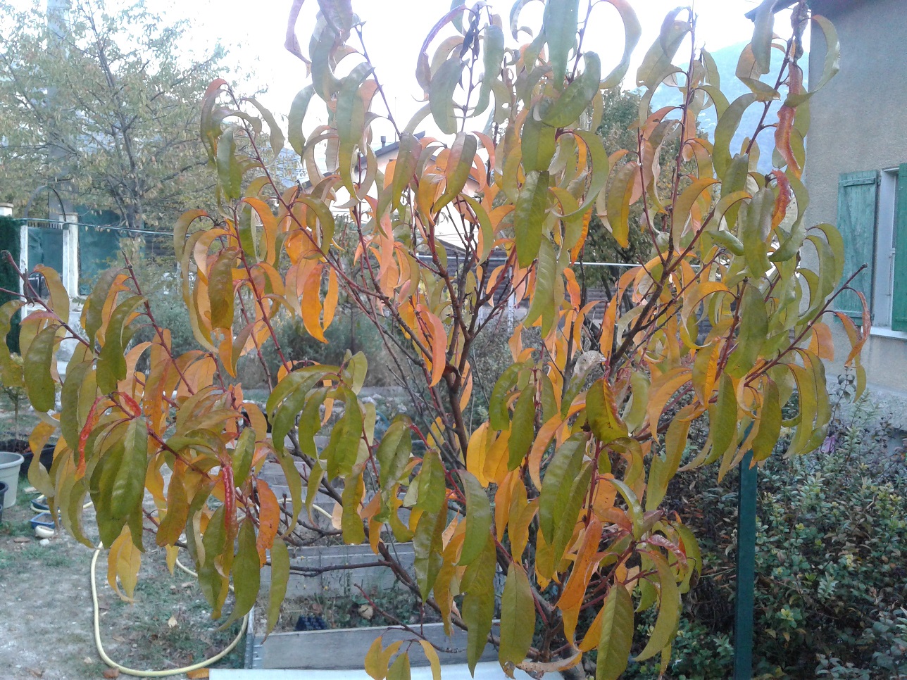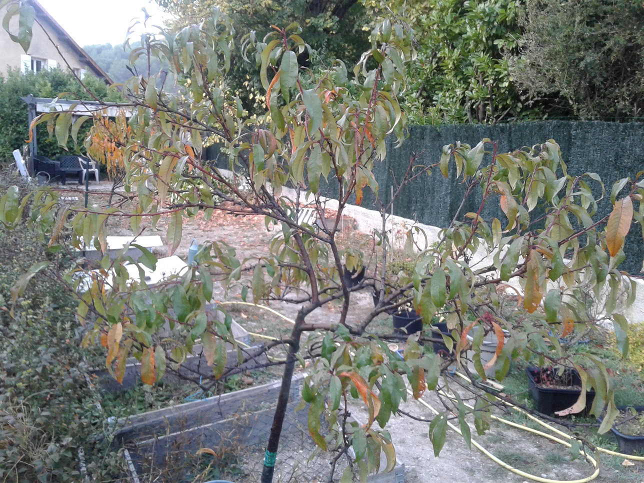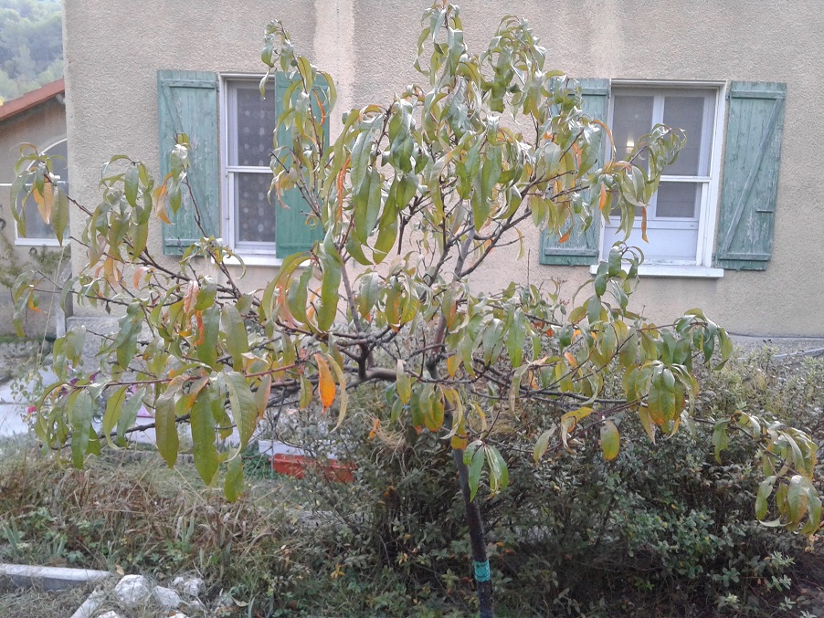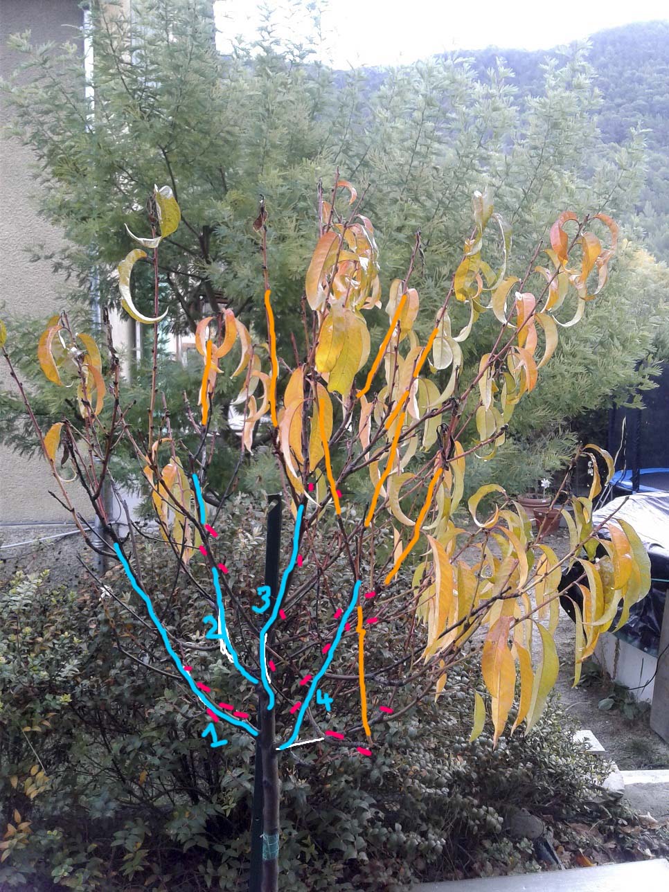 -Chaque rameau orange est capable de porter trois pêches ou parfois plus. Il ne faudra pas les tailler !!! bien entendu.