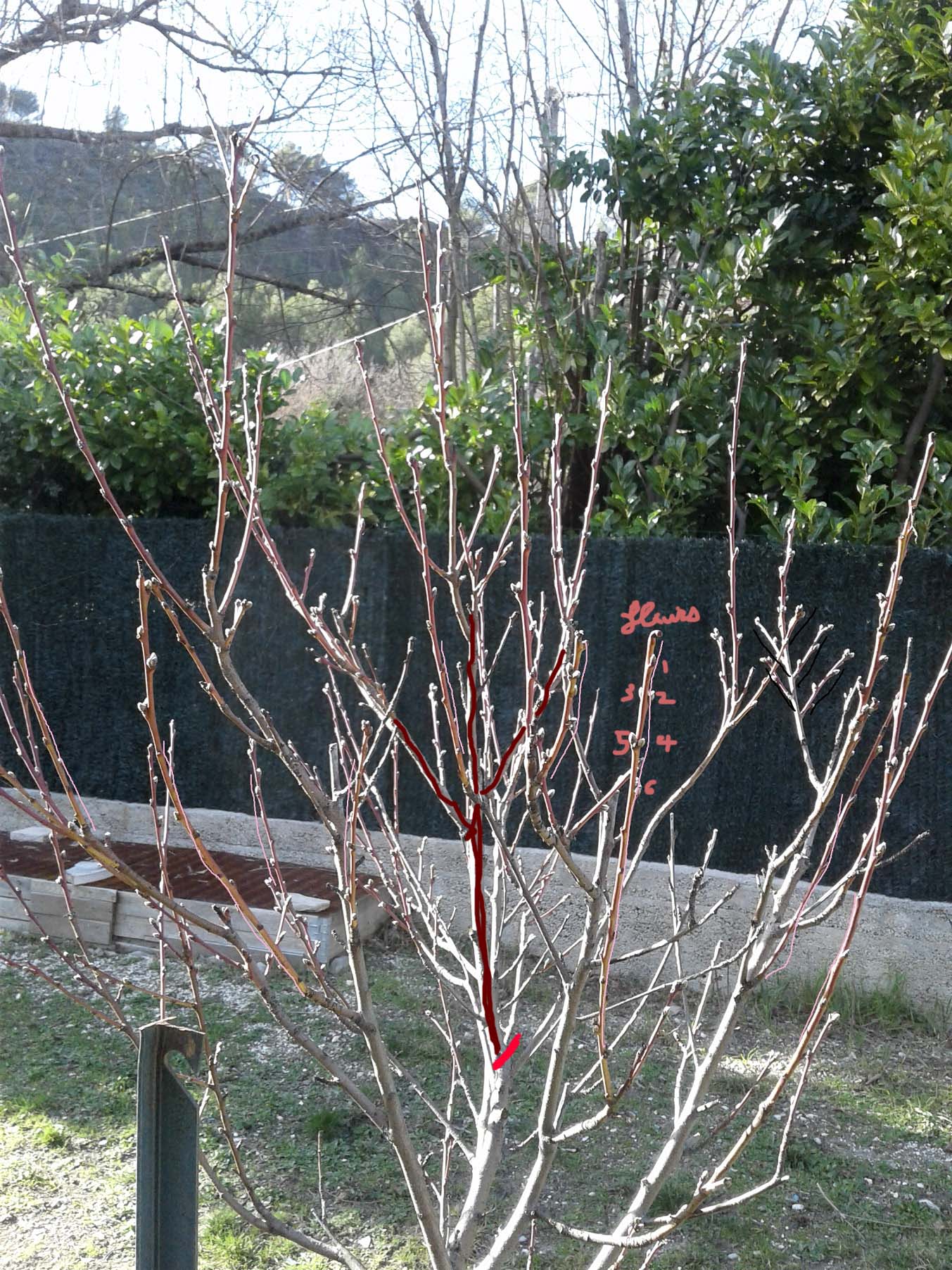 Je te propose de te familiariser avec cette image avant de tailler un peu plus tard quand les bourgeons à fleur auront grossi.