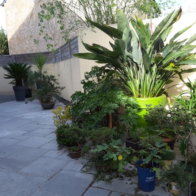 Je vous présente ma terrasse de plantes en pot située en zone USDA 9b, plus précisément en ville à 1 KM. de la mer.