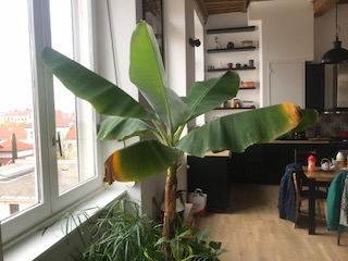J'habite à Lyon et j'ai acquis un petit bananier en mai 2017. Il a très vite grandit car notre appartement est très lumineux. Après l'avoir rempoté, tout l'été, je l'ai largement arrosé, brumifié, fumé... Il faisait une feuille par semaine.