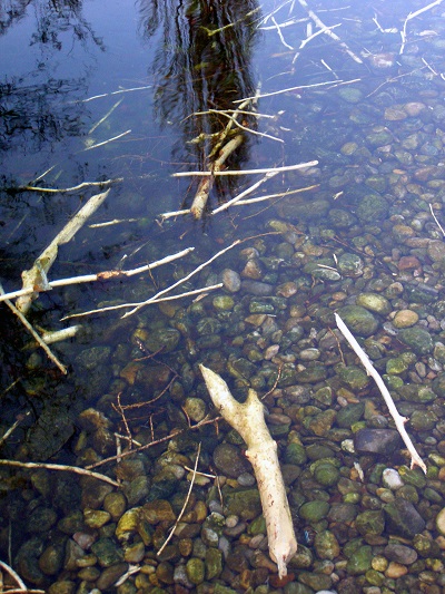 sur cette photo. Une zone claire sous l'eau indique le passage répété, le fond de l'eau est régulièrement brassé. Ici, un œil averti la repère facilement.