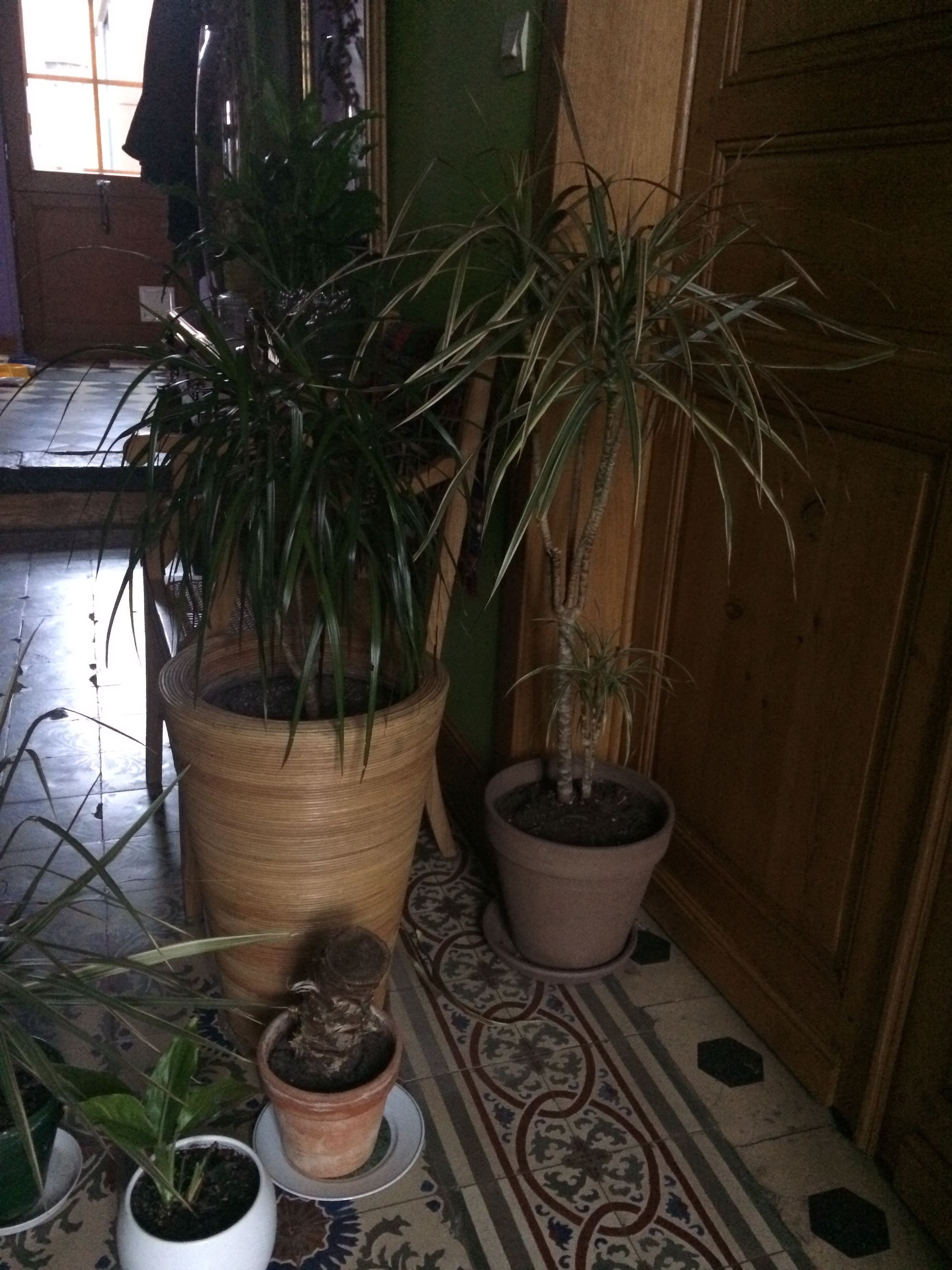 De plus, je pense que le changement d'environnement (suite à un déménagement) ne doit pas lui plaire (lumière/étouffement/température). Aujourd'hui, elle se trouve dans mon entrée, à coté d'une autre dracaena (qui elle est en pleine forme).