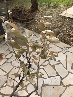 Depuis quelques semaines, les feuilles blanchissent et meurent, le bois devient tacheté et quand on coupe, j’ai comme l’impression que de la poudre blanche a remplacé la sève.