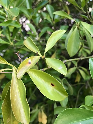 Par ailleurs en observant le reste de la haie j’ai l’impression que toute les feuilles vertes ont des taches blanches sur le dessus (je n’ai pas vérifié le dessous je le ferai ce soir).