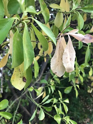 :welcome: bonsoir à tous, un jeune débutant du jardinage vient demander un peu d’aide suite à une possible maladie ( :shock: ) de ma haie pittosporum (je ne suis même pas sûr du type de haie c’est dire mon niveau... :oops: )