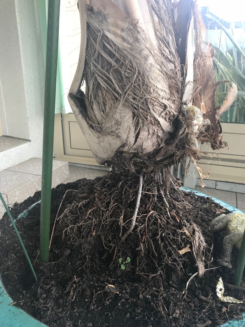 Je viens d'acquérir une nouvelle maison. Dans la véranda, il y a un palmier. Reconnaissez-vous cette variété ? Et comment en prendre soin ? Il a besoin d'avoir les racines plus dans la terre non ?