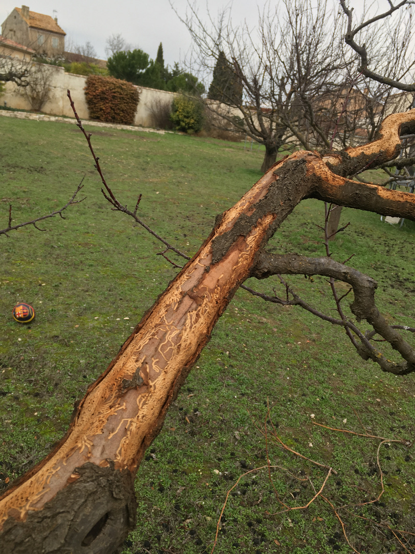 Mais il peut il y avoir eu d'abord un affaiblissement de l'arbre par chancre bactérien ou manque de racines puis les Scolytes en ont profité. Il est assez rare qu'ils s'attaquent à des arbres vigoureux en parfaite santé, ils préfèrent les moribonds.