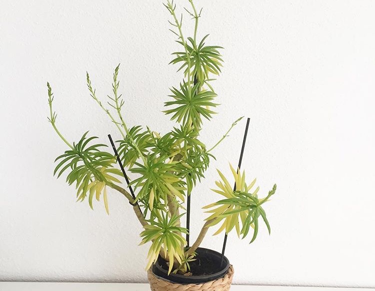 Oui, allure de Kleinia, par exemple K. neriifolia, mais sans certitude. La floraison paraît celle d'une plante un peu étiolée par rapport à ce qu'on peut voir en sites naturels aux Canaries où la plante, en situation sèche et en plein soleil, présente une floraison plus trapue, plus ramassée.