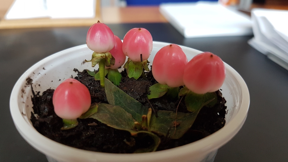 La composition étant morte, j'ai essayé de couper cette petite plante et lui débarrassant ses 2 seules feuilles et ses jolis boutons qui ne ressemblent pas à des fleurs mais à des fruits. Je l'ai mise dans un gobelet avec de la terre pour la garder droite et à l'humidité mais là, elle est au bout du bout.
