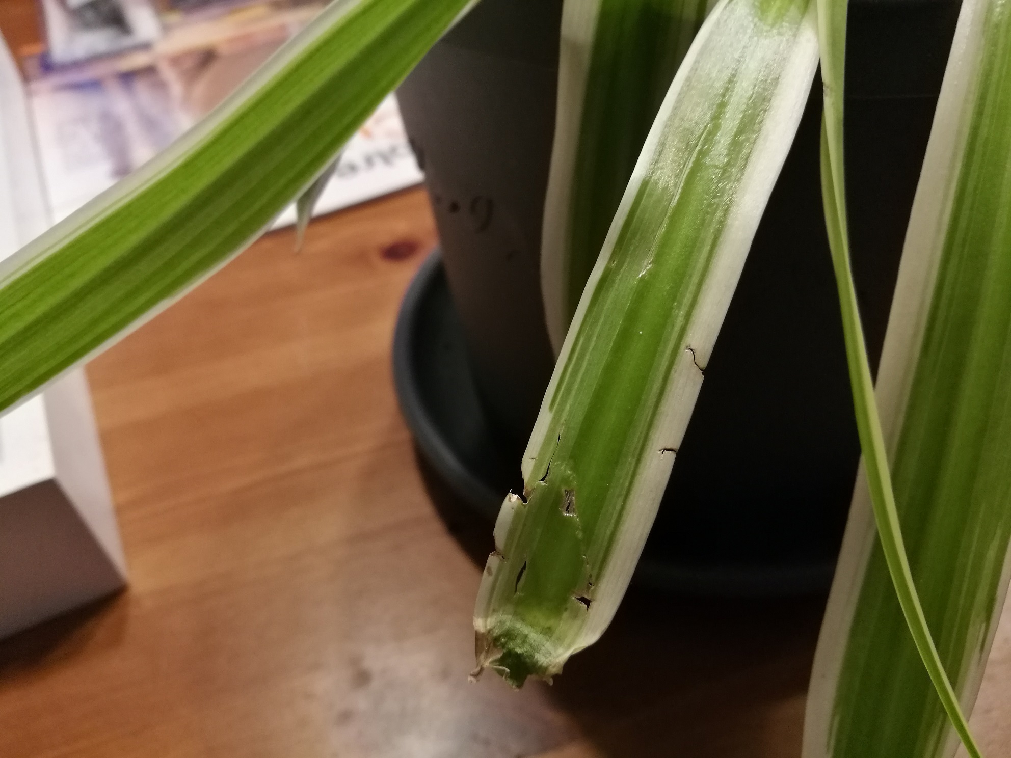 Depuis quelques temps, j'ai les feuilles de mes plantes d'intérieurs qui sont grignotées gentillement mais surement (photos).