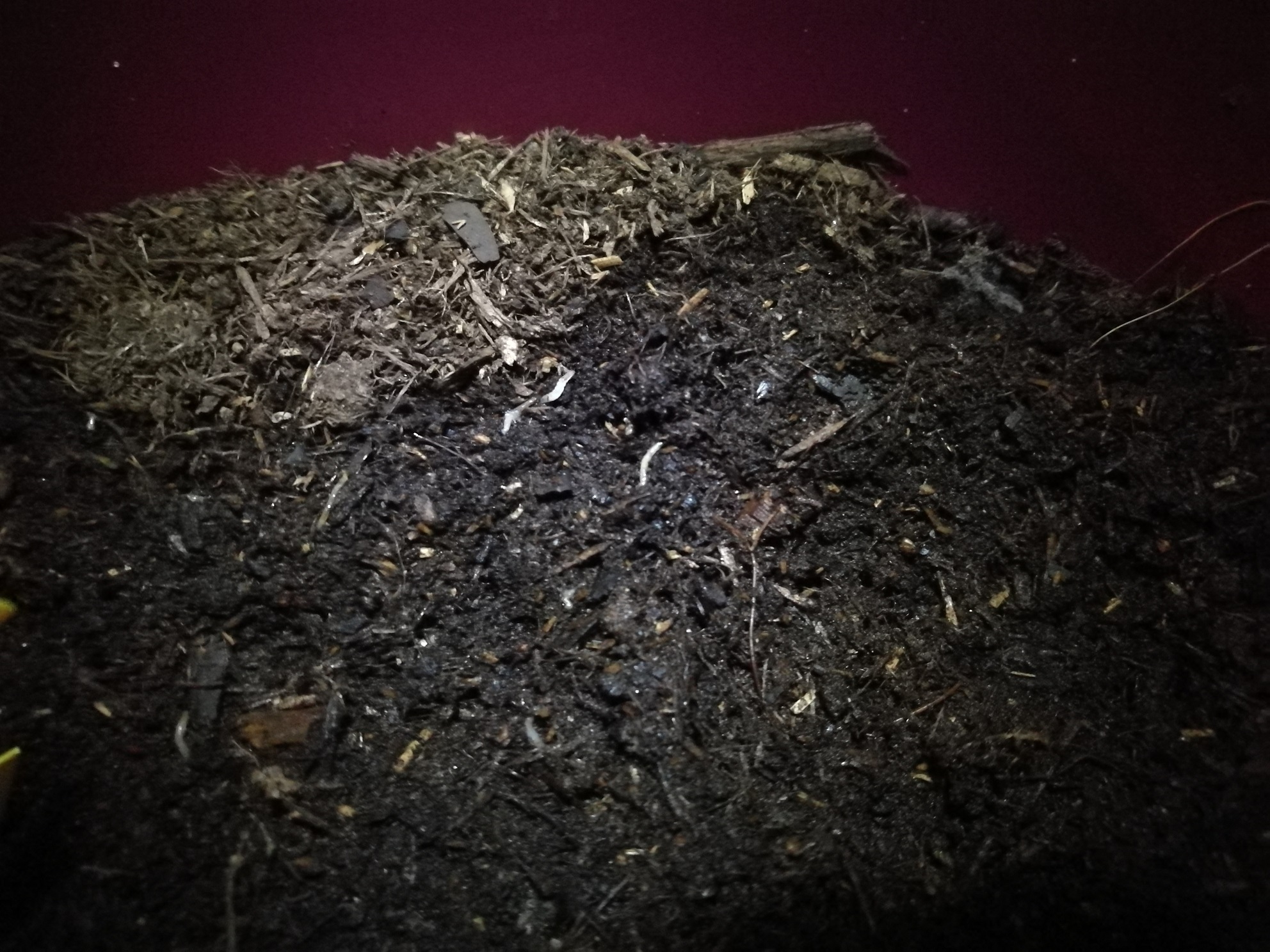 J'ai acheté des nématodes, pour tester si ça fonctionne, et ai arrosé mes plantes jeudi soir dernier et depuis, il y a ces vers blancs qui remontent à la surface (photo).