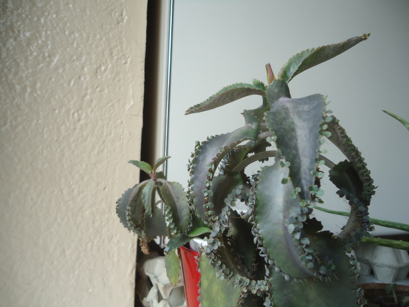 Les petites qui m'amènent sont mes kalanchoés de Daigremont (différents rejets de la même plante récupérée il y a deux ans), dont je n'ai jamais tout à fait compris le comportement, notamment quand je les compare aux photos du net. Voici quelques illustrations.