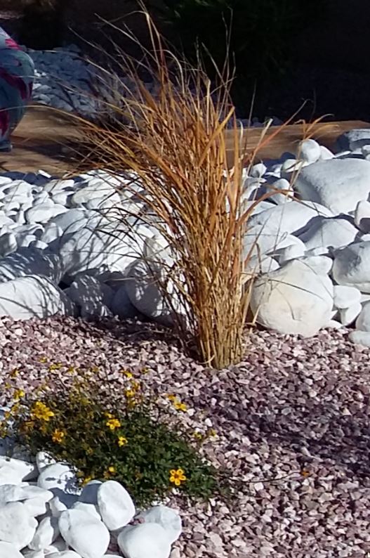Je pense que les fleurs jaunes sont des bidens, les plantes à "pompom" des pennisetum mais pas sûre et pour les autres, je ne retrouve pas leur nom, en particulier les fleurs violet.