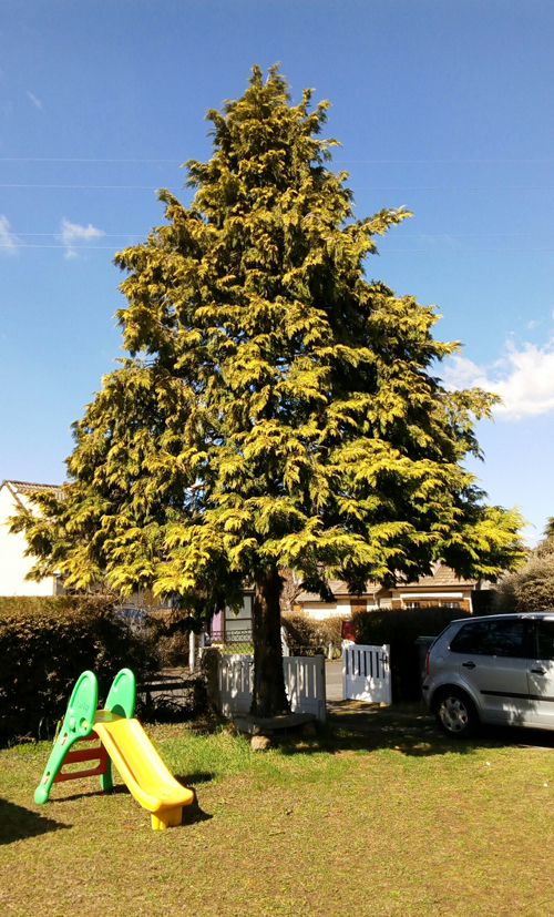 Nous avons un conifère (de type thuya géant) d'environ 30 ans assez imposant dans notre jardin qui se "déplume" d'année en année (voir photos). Un champignon d'après un paysagiste qui l'a élagué l'année dernière, espérant que cela endiguerait la maladie.