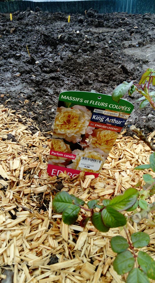 plantation d' un rosier et de deux skimmia et pose de brf