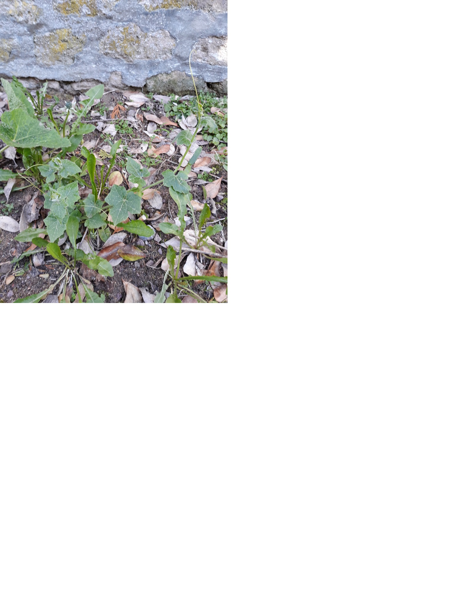 Quelqu'un pourrait-il me dire ce qu'est cette drôle de plante qui pousse spontanément dans la venelle jouxtant ma maison? J'habite en Normandie, à quelques mètres de la mer. Je trouve que ça ressemble à quelque chose du genre potiron, butternut ou melon...