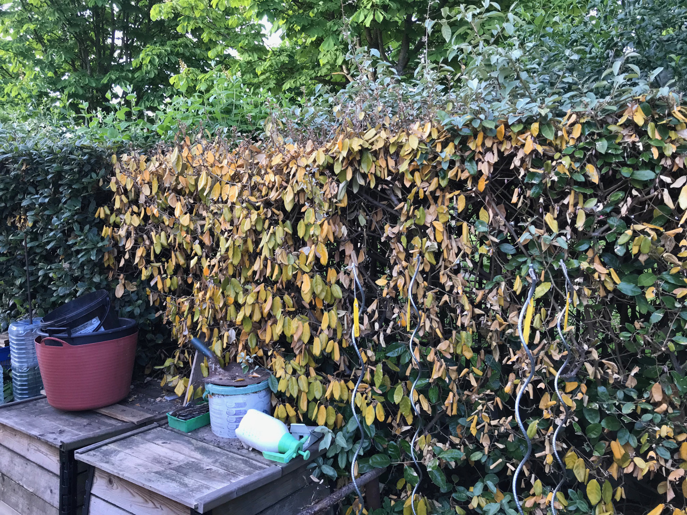 en plus, se sont des eleagnus qui sont sensés être très résistants en comparaison avec d'autres types d'arbustes... ils ne sont pas mort, une bonne taille et ils devraient repartir... il faut trouver une solution pour éloigner ces composteurs de tes plantes.