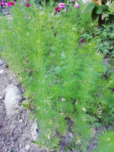 J'ai ces plantes qui poussent spontanément et je n'arrive pas à comprendre ce que c'est, des Cosmos mais ça me semble petit, des Adonis ???