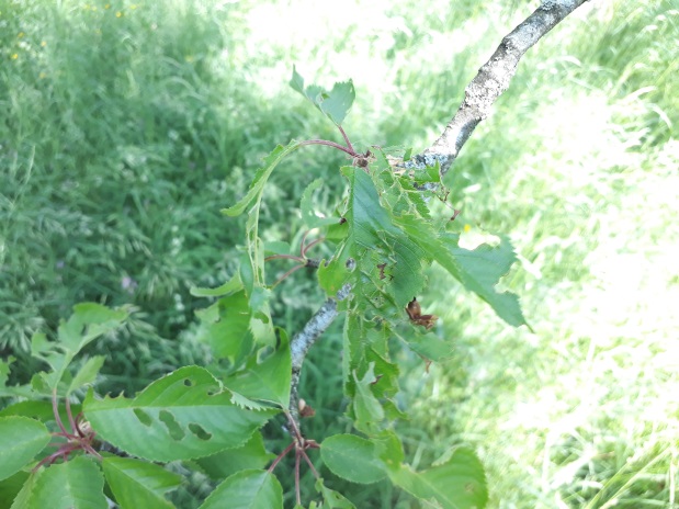 D'année en année et suite à la faible production du verger, l'entretien s'est réduit et se limite maintenant à la taille annuelle des arbres et à une tonte du terrain quelques fois par an. Cette année, les chenilles ont prospéré et les arbres ont les feuilles bouffées.