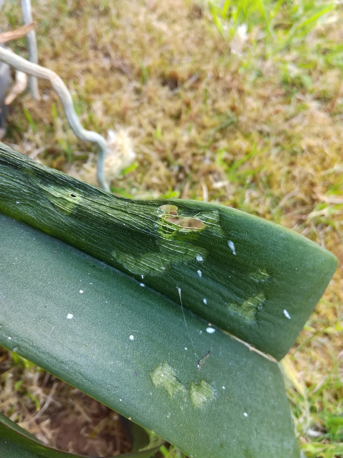 Tournesols: Bégonias: Lys: Les orchidées que j'avais sorti: Dans le paillage de mes parterres (copeaux de bois), j'ai remarqué pleins de bestioles qui sautent dans tous les sens quand on gratte. Est-ce que cela pourrait-être les coupables?? Voici un photo, j'ai du l'écraser pour réussir à avoir une photo... Merci beaucoup de votre aide!!