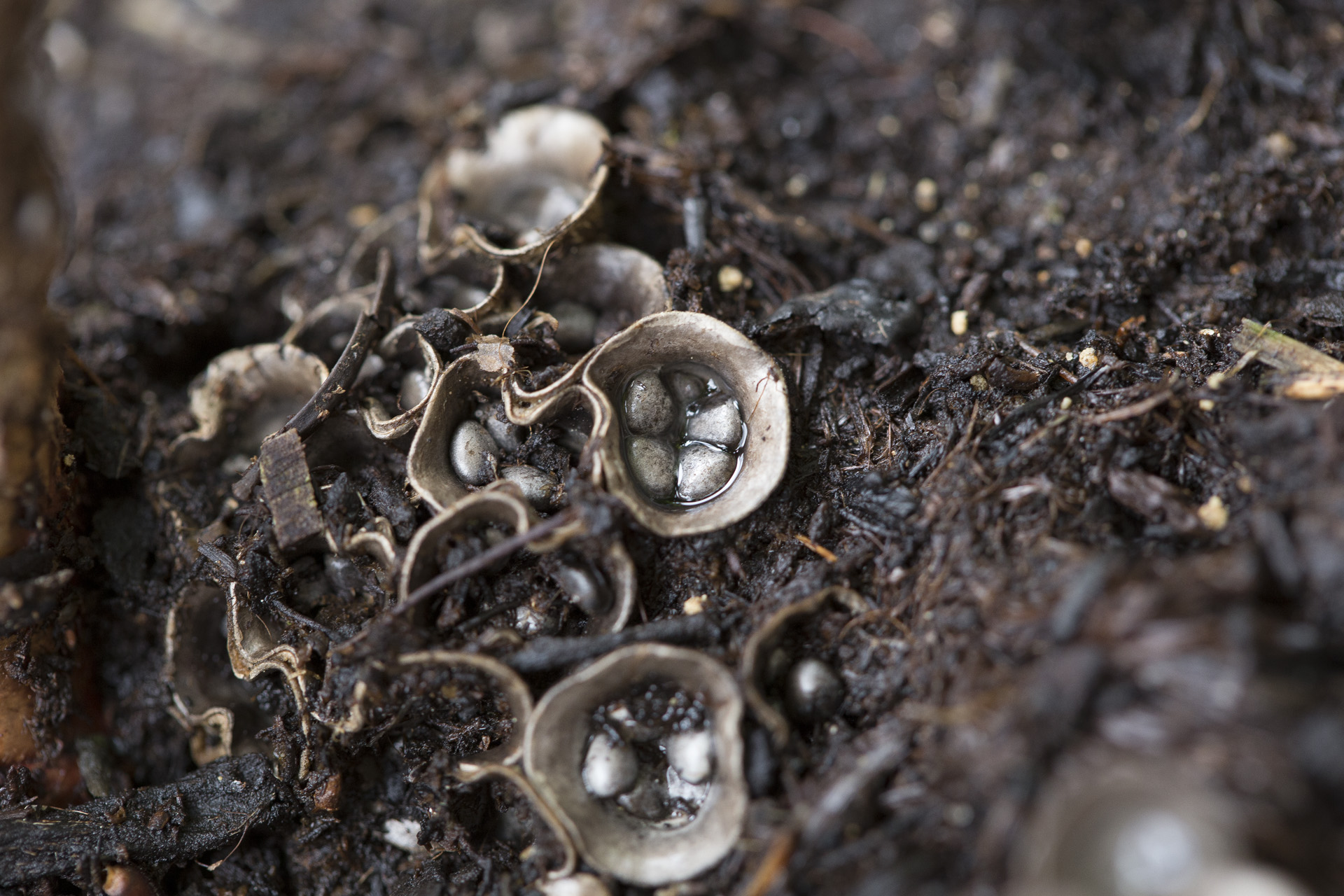 A maturité, les petits "oeufs" (les péridioles qui contiennent les spores) seront projetés violemment jusqu'à plusieurs mètres.