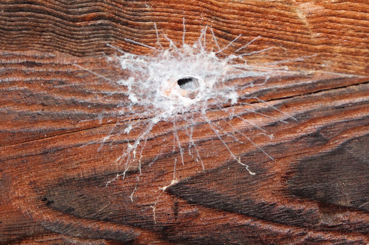 Un orifice de 3mm de diamètre dans une très grosse et vieille poutre en châtaignier...