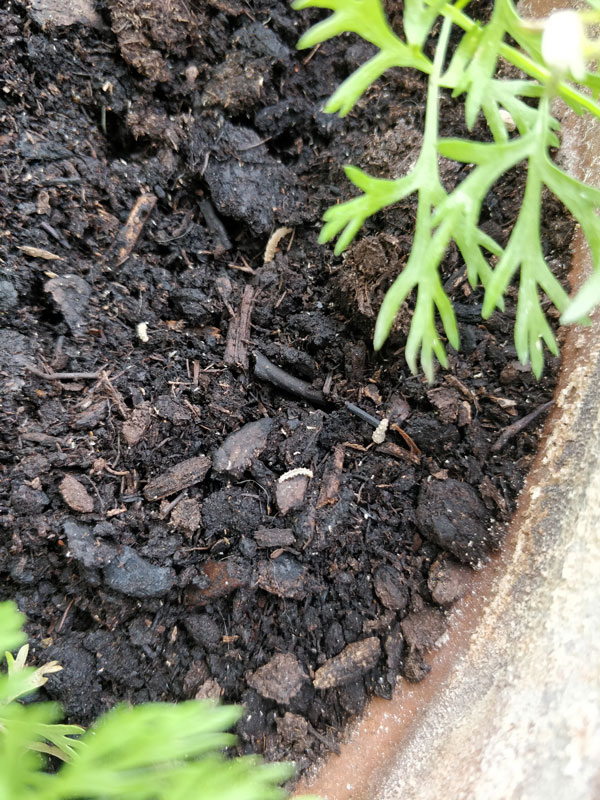 Je débute en jardinage et j'ai installé un petit potager sur mon balcon. Depuis hier soir, j'ai remarqué que mes carottes étaient envahies par ce petit ver / chenille / insecte (?) blanc, qui se balade sur le terreau et un peu sur les tiges. Savez vous de quoi il s'agit et s'il est nuisible ? Il est accompagné de petits moucherons noirs. Et une petite vidéo pour observer leurs déplacements :https://www.youtube.com/watch?v=4u5virWwmhI