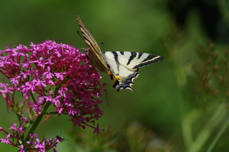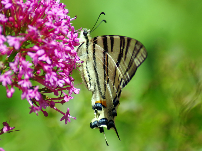voici celle d'un machaon prise sur notre arbre à .....papillons, je n'en avais plus vu depuis mon enfance, la photo n'est pas aussi nette que celle déjà publiées mais nous avons été surpris par sa visite et je confirme ces petites bêtes ne restent pas en place plus de quelques secondes.