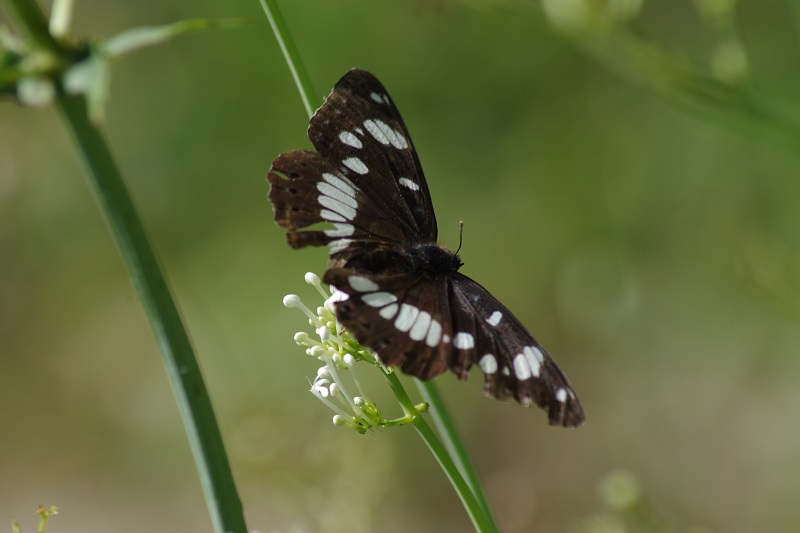 Voici la suite du paillon noir à taches blanches , sur le dessous ses ailes ont une couleur différente . Ses ailes sont bien abimées .