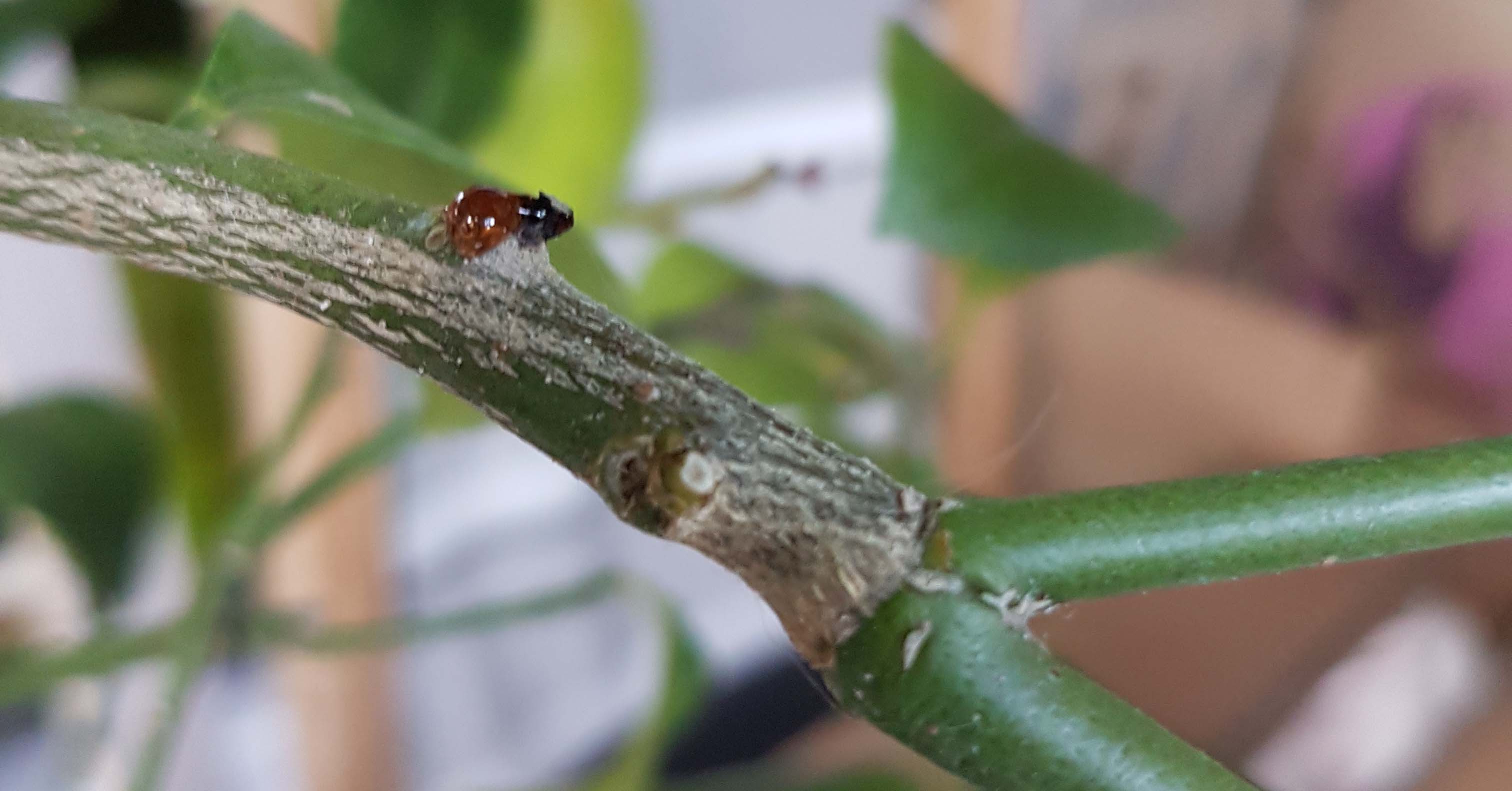 L'autre me dit oh non, ce sont peut être des cochenilles, traitez à l'insecticide et arrêtez d'arroser, il a eu trop d'eau.