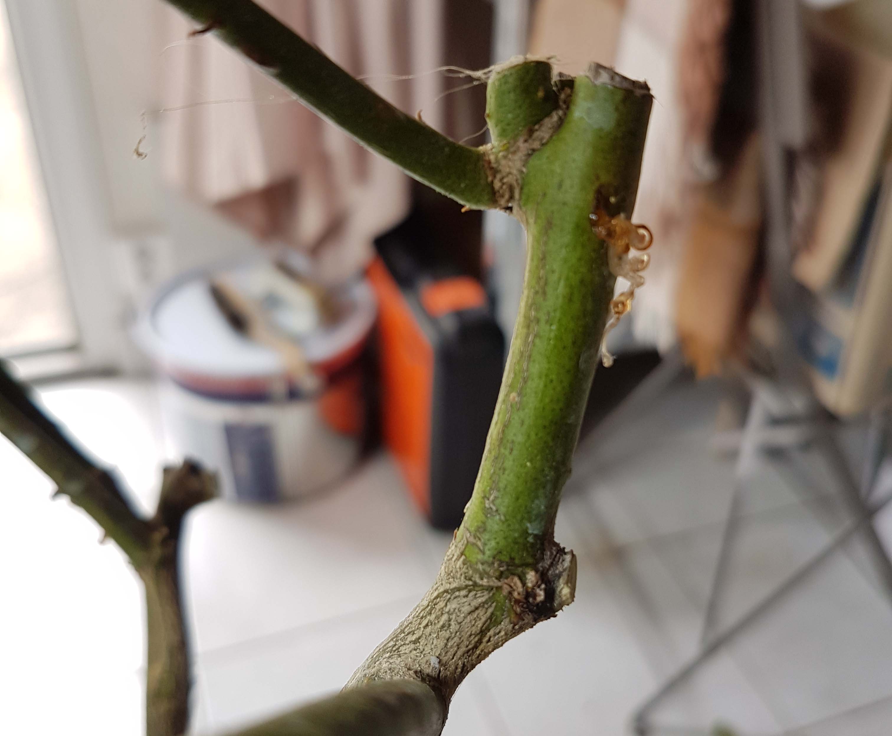 Peut être que je me trompe mais voyez plutôt les photos : la gomme coule aux coupes précédentes mais aussi au milieu de branches, en fines coulures qui s'entortillent et d'une couleur très claire.