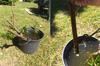 En Mars j'ai taillé un Murier Platane et j'ai gardé quelques branches dans un seau et cela a donné ce que vous voyez sur la photo jointe.