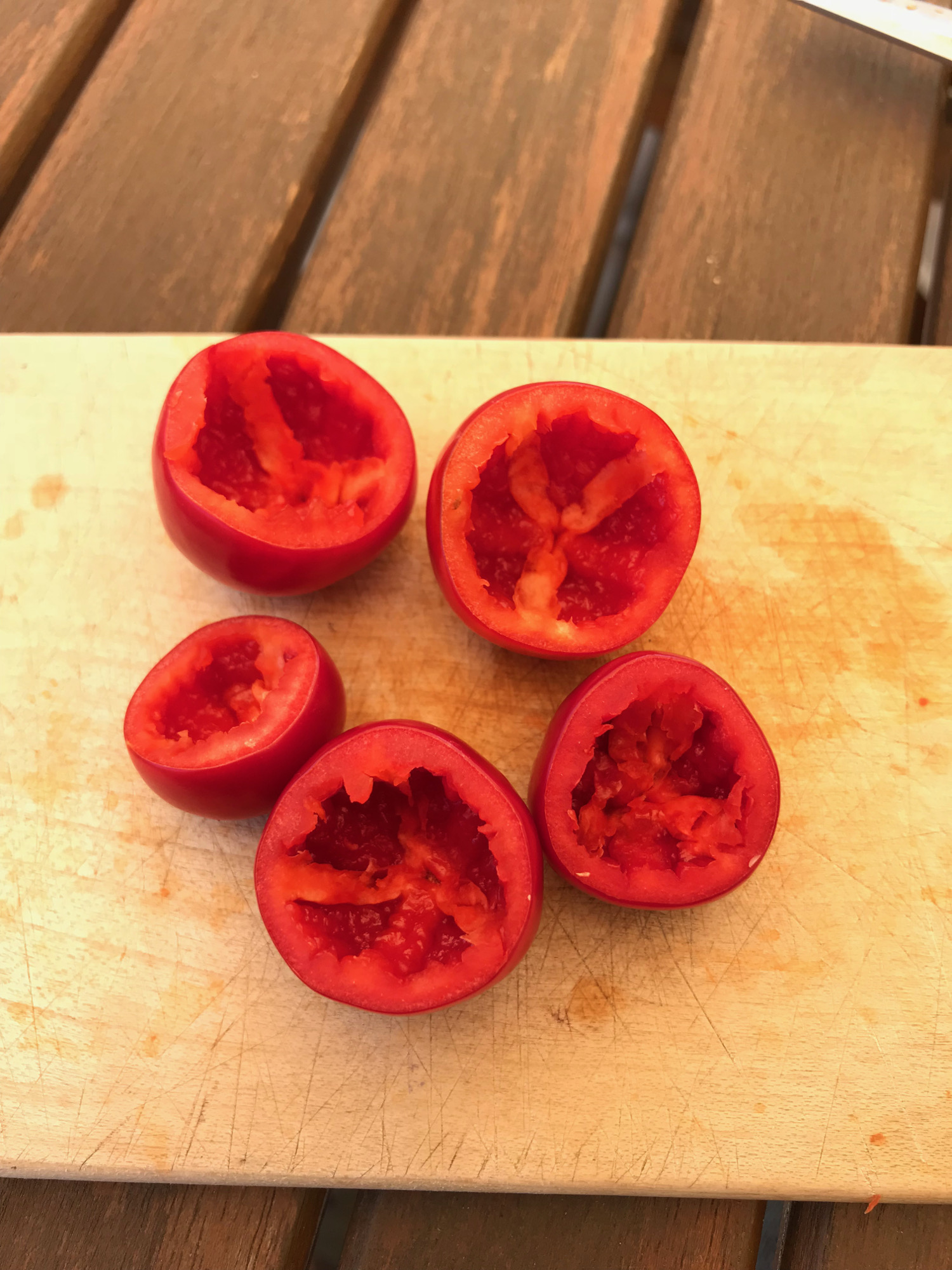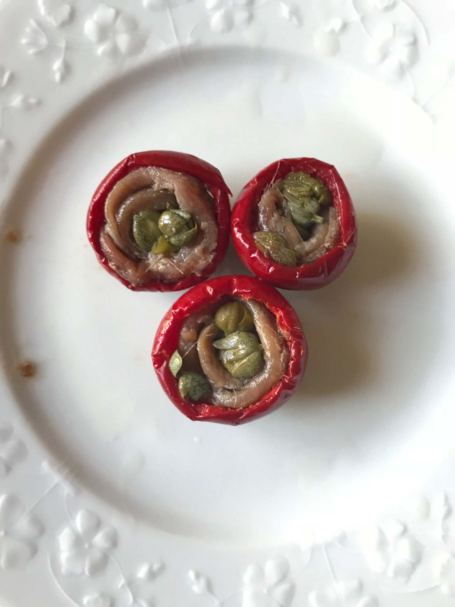 Salut Shinga perso je n'ai encore jamais fait ça mais les faire tremper un peu dans de l'huile d'olive me semble bien . Dans l'huile d'olive tu peux aussi mettre du thym et du romarin (mais ça je crois qu'il n'y en pas dans ta région) . Pour la farce si tu n'as pas d'idée tu peux toujours essayer de farcir avec diverses sortes de fromage . Vache joyeuse , brousse , féta , chèvre frais …. Voire mélanger le fromage avec des petits bouts d'olives , d'anchois , de jambon ou jambon cru etc....