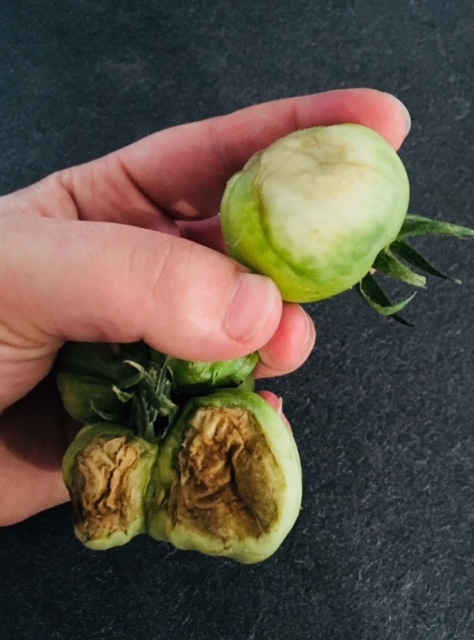 Ça peut être Phytophthora infestans les fruits deviennent bosselés et pourrissent. Le traitement préventif est la bouillie bordelaise à 1,5% avant la formation des fruits pour le premier traitement. Les fruits atteints c’est l’incinérateur, pas le composteur. Un engrais tomate est le bienvenu. Il n’existe pas de traitement curatif. Par curiosité quelle est la variété de tomate ? Merci