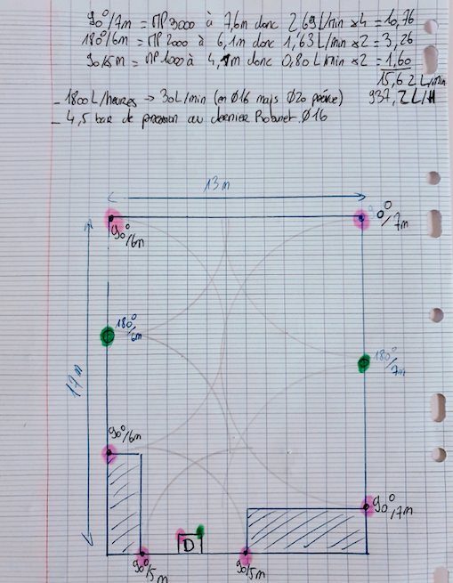 En fait je n'ai pas "encore" fait d'essai, quand je disais" j'ai mis juste 1 arroseur par réseau" c'était sur le dessin :)