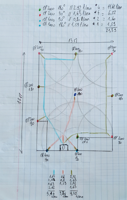 un 2° réseau de 4 MP2000 (2*180° & 2*90°) = 9,10L/min
