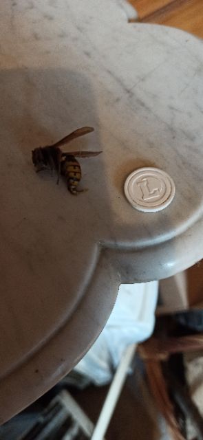 j'ai des frelons aussi, j'en ai tué un hier dans mon bureau (photo ci-dessous), aurais-je du ? d'autant que ce n'était pas un asiatique, mais ça je ne l'ai vu qu'après et ce type de bestiole n'est pas très rassurant dans une maison.
