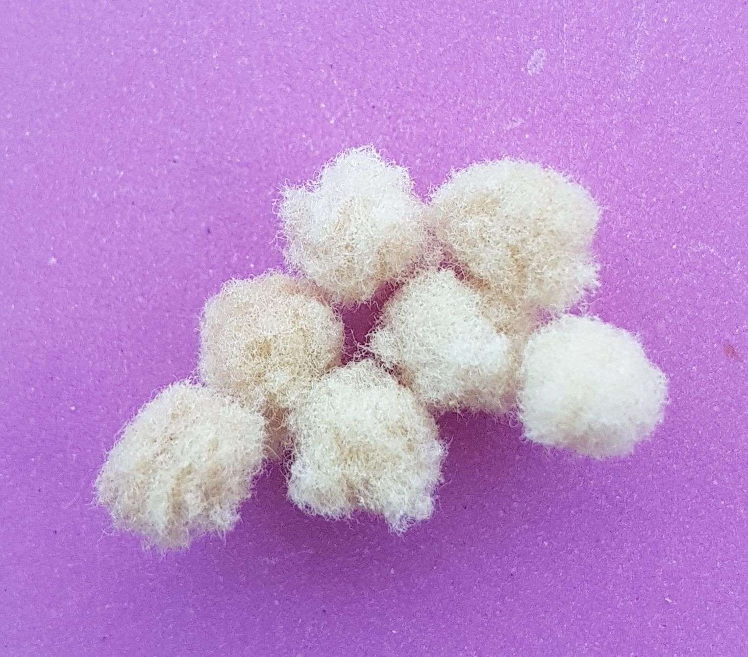J'ai découvert sur le sol de ma terrasse des petites boules cotonneuses beiges d'environ 0,5 cm de diamètre. Est-ce du pollen ? Qu'en pensez-vous ?
