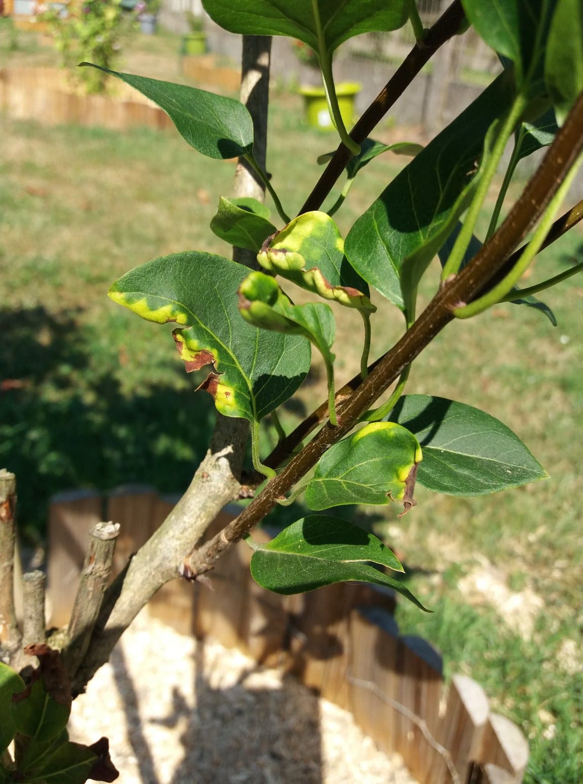 Bonjour à toutes et tous , après la défloraison de mon lilas, je l 'ai donc taillé ( comme pour un bouquet de fleurs). J'ai remarqué par après, de petits trous dans quelques feuilles , des feuilles repliées (pas énormément non plus), et en ce moment les jeunes repousses brunissent