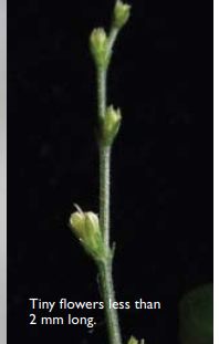 Arrangement de feuilles opposées et épis de fleurs ressemblant à des fouets