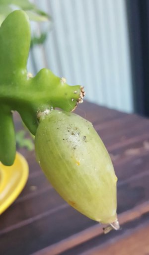 La personne qui possède cette plante a ouvert le fruit, et cela ressemble bien aux photos qu'on trouve ici : https://en.wikipedia.org/wiki/Epiphyllum_anguliger.
