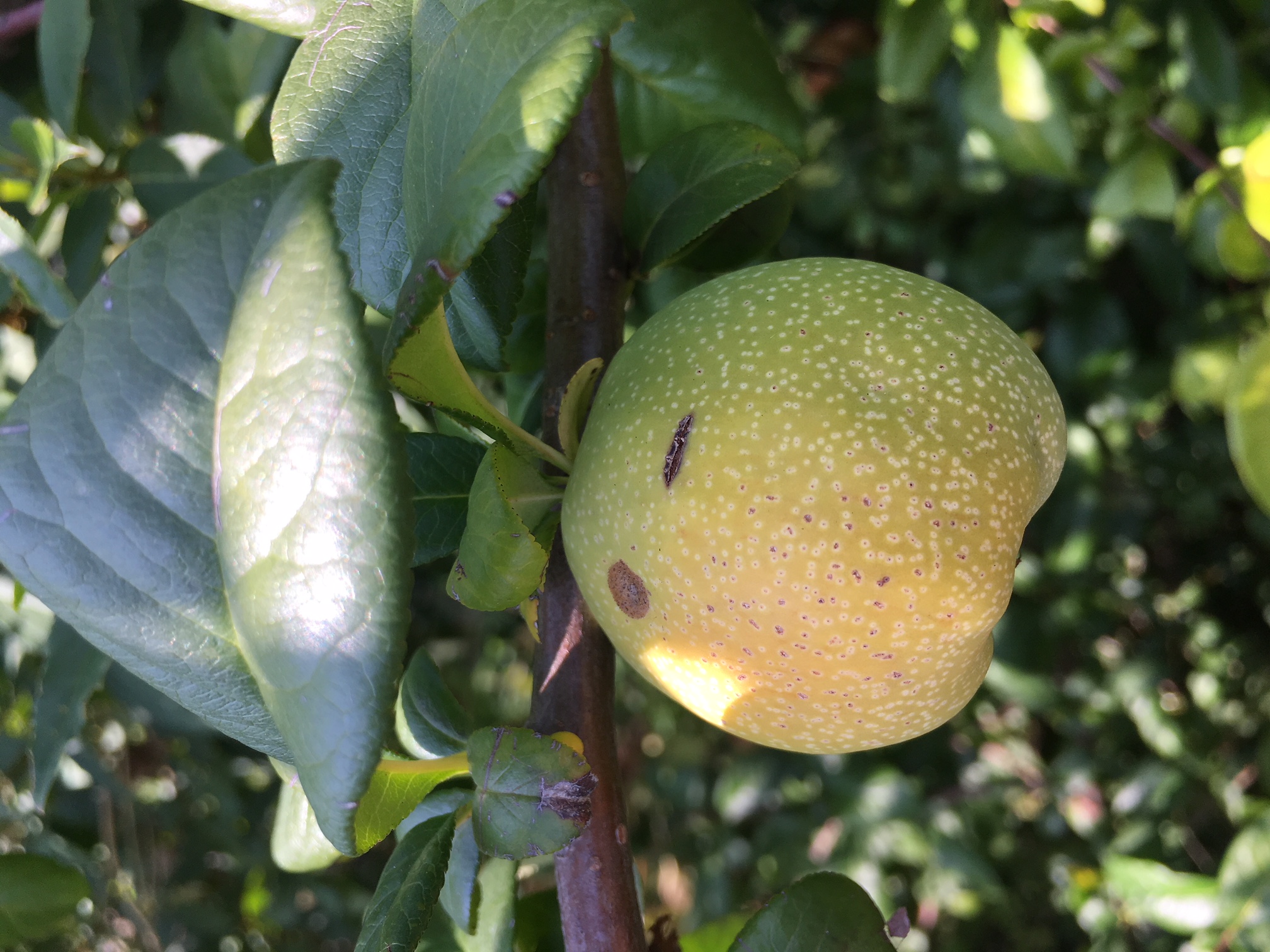 Les deux se ressemblent beaucoup, fruit et feuilles (je trouve). Ce qui me perturbe un peu c'est que le nashi a un pédoncule bien développé et visible.