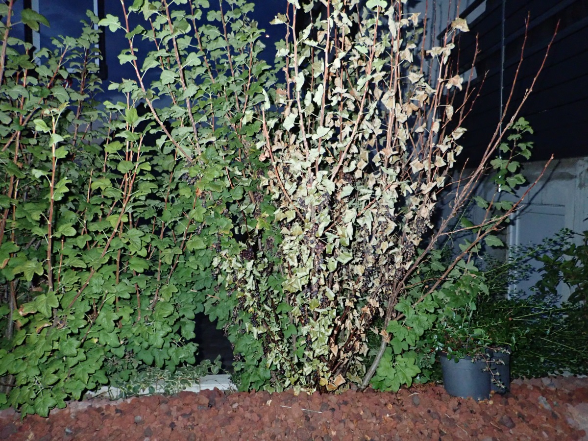 J'ai depuis le mois d’août mes Ribes perdent leurs feuilles. Deux sur trois, celui du milieu non. En début septembre se fût celui de droite.