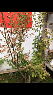 -Soit il est insuffisamment arrosé, voir pas du tout, et ton Acer en difficulté, ne pouvant pas se nourrir,abandonne des branches pour rester en vie.