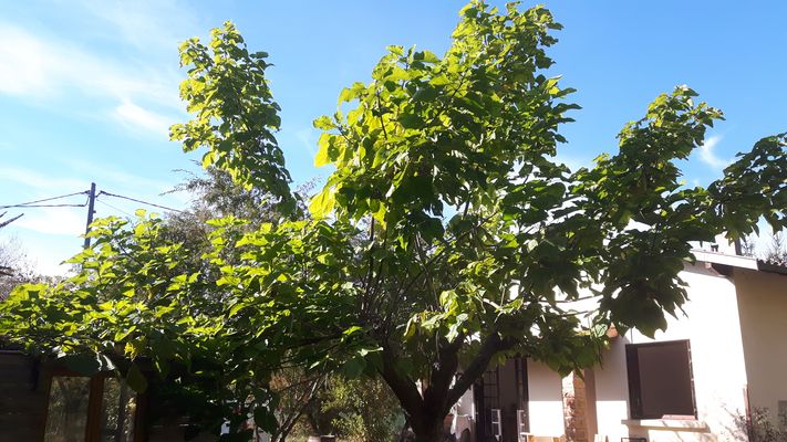 En fait j'en ai un autre dont la taille a du être mieux suivie et les branches/feuilles forment un tout plus compact autour du tronc. J'aime bien la forme parisienn parasol de celui ci mais je n'ai pas envie qu'il s'étale de trop non plus!