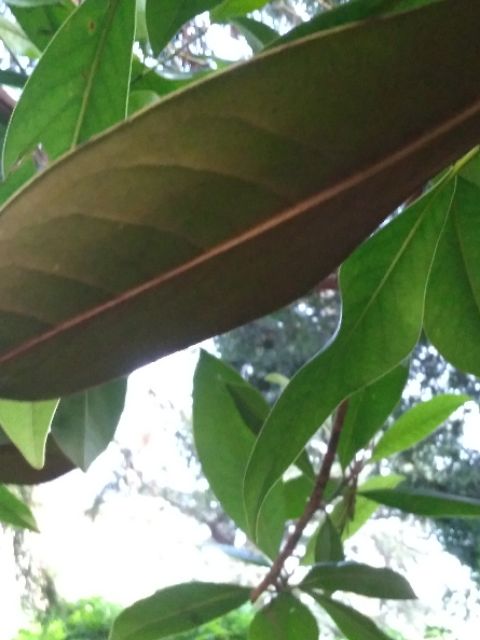 feuilles coriaces, vert luisant, dessous marron sur les feuilles âgées.