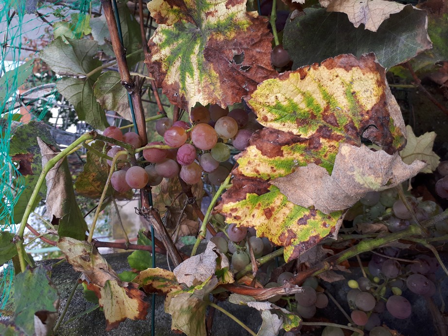 De très grandes feuilles ? Des raisins mûrs er d'autre encore verts sur une même grappe ?